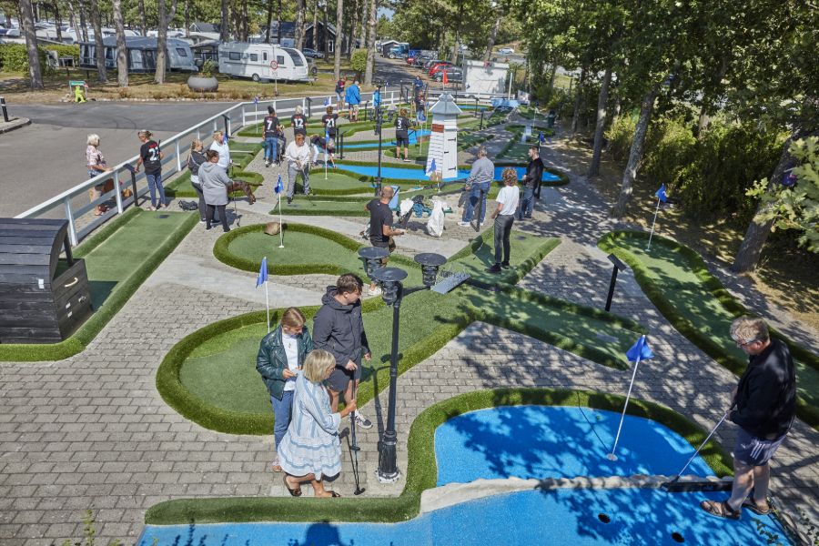 I 2021 byggede vi en helt ny minigolfbane. Banen er smukt opbygget i strand tema, og har baner af vekslende tekniske udfordringer og sjove detaljer.